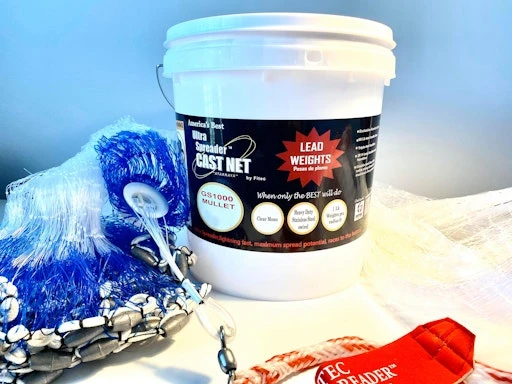 GS 1000 ULTRA SPREADER MULLET NET™ – The GS Ultra Spreader™ Mullet Net has a 1″ mesh size for targeting mullet, bunker, and other large bait. This net has superior strength with a six-panel design and 1 lb. Real Lead Weight per Radius Foot.
